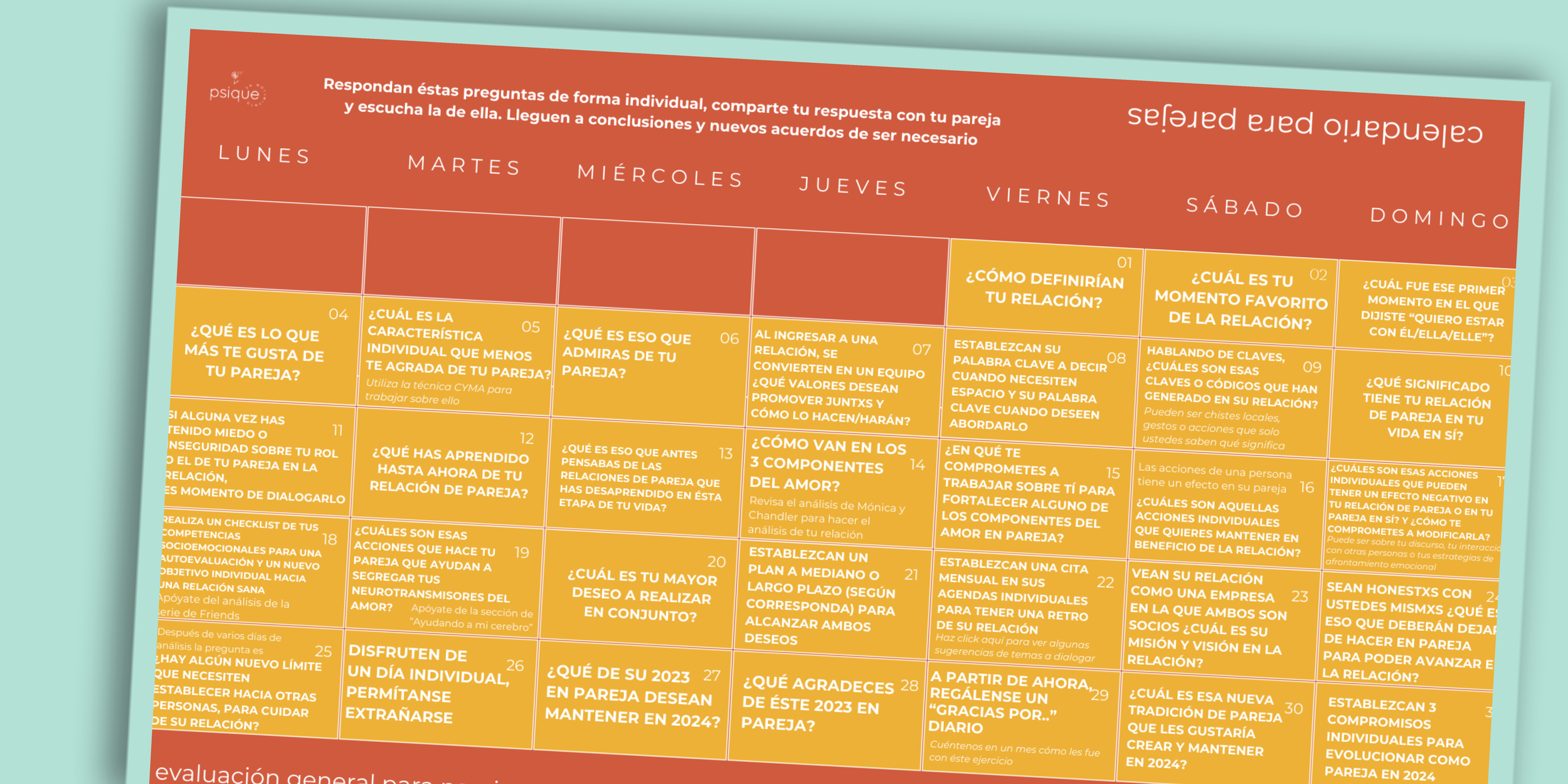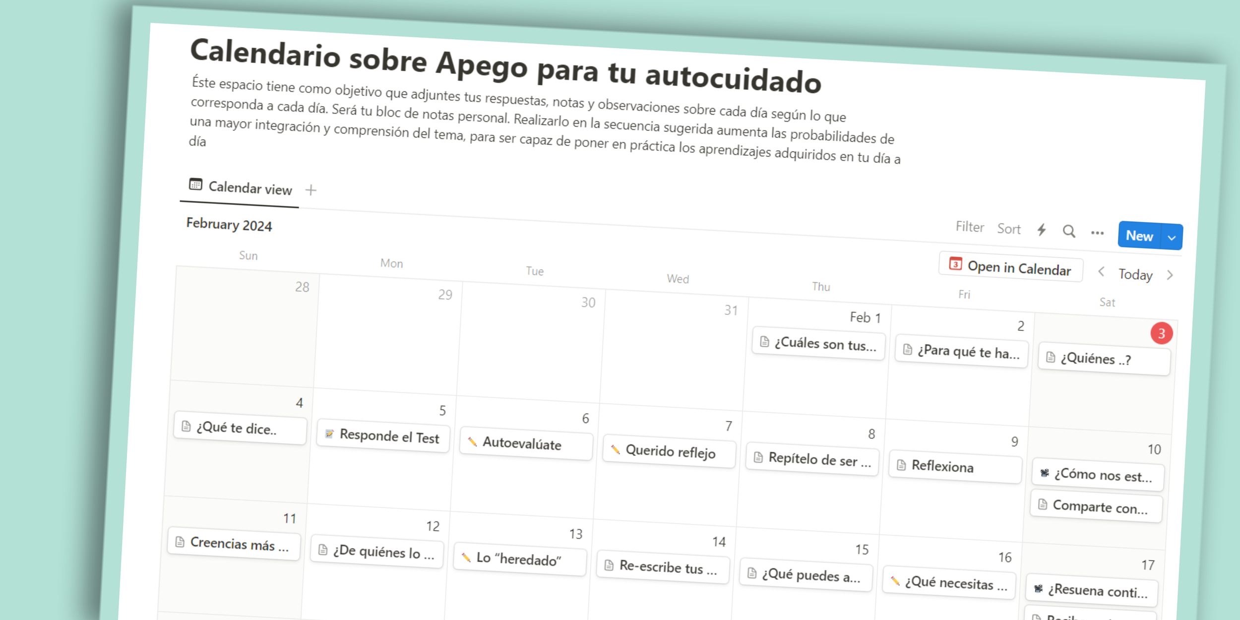 Calendario de autocuidado